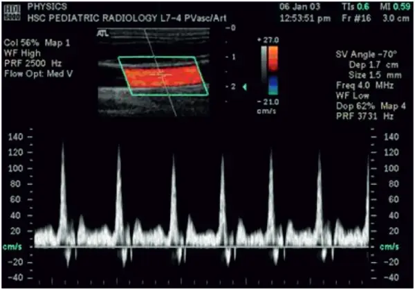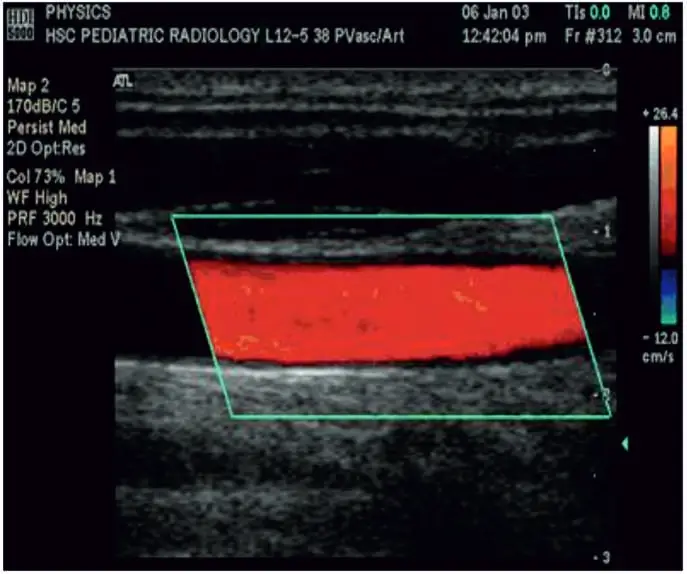 Sonography can be enhanced with Doppler measurements, which employ the Doppler effect to assess whether structures (usually blood) are moving towards or away from the probe, and its relative velocity. By calculating the frequency shift of a particular sample volume, for example a jet of blood flow over a heart valve, its speed and direction can be determined and visualised. This is particularly useful in cardiovascular studies (sonography of the vasculature system and heart) and essential in many areas such as determining reverse blood flow in the liver vasculature in portal hypertension. The Doppler information is displayed graphically using spectral Doppler, or as an image using color Doppler (directional Doppler) or power Doppler (non directional Doppler). This Doppler shift falls in the audible range and is often presented audibly using stereo speakers: this produces a very distinctive, although synthetic, pulsing sound.